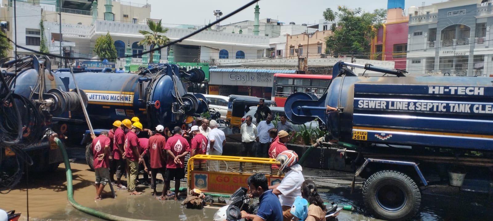 మురుగు, వరద ముప్పు ఉన్న అక్బర్బాగ్ ప్రాంతాన్ని జీహెచ్ ఎంసీ కమిషనర్ ఆర్ వీ కర్ణన్ తో కలిసి హైడ్రా కమిషనర్ ఏవీ రంగనాథ్ శనివారం పరిశీలించారు. క్షేత్ర స్థాయిలో సమస్యను తెలుసుకున్నారు. వెంటనే ఈ సమస్యకు పరిష్కారం చూపాలని సంబంధిత అధికారులను ఆదేశించారు. వర్షం పడిన ప్రతిసారీ ఈ సమస్య తలెత్తుతోందని స్థానికులు కమిషనర్కు తెలిపారు. పైనుంచి వచ్చిన వరద, మురుగు నీరును సాఫీగా మూసీలో కలిపే జంక్షన్ లైను దెబ్బ తినడంతో ఈ సమస్య తలెత్తుతోందని స్థానికులతో పాటు.. అధికారులు చెప్పగా .. పరిష్కార మార్గాలపై అక్కడే చర్చించారు. దాదాపు వంద మీటర్ల మేర ఉన్న పైపు లైనులో పేరుకుపోయిన నిర్మాణ వ్యర్థాలు, చెత్తను తొలగించడానికి హై ప్రజర్ జెట్టింగ్ మిషన్లతో ప్రయత్నించాలని సూచించారు. లేని పక్షంలో ట్రాఫిక్కు ఇబ్బందులు ఏర్పడకుండా కొత్త పైపు లైను నిర్మాణ పనులను యుద్ధప్రాతిపదికన చేయాలనే ప్రతిపాదన చేశారు. కోఠి నుంచి దిల్సుఖ్నగర్ వెళ్లే మార్గంలో మలక్పేట రైల్వే స్టేషన్ – నల్గొండ చౌరస్తా మధ్య మెట్రో పిల్లర్ నంబరు 1417 – 1420 మధ్య ఈ సమస్య తలెత్తిన విషయం విధితమే. పై నుంచి వచ్చిన వరద నీరు రోడ్డుమీద నిలవడంతో వాహన రాకపోకలకు ఇబ్బందులు ఏర్పడడంతో హైడ్రా, జీహెచ్ ఎంసీ కమిషనర్లు సంయుక్తంగా పరిశీలించారు.